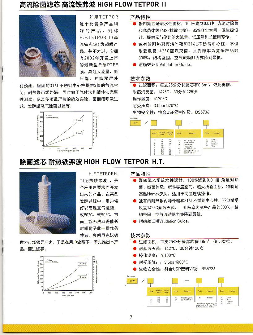 高流除菌濾芯 高流鐵氟龍濾芯 HIGH FLOW TETPOR II